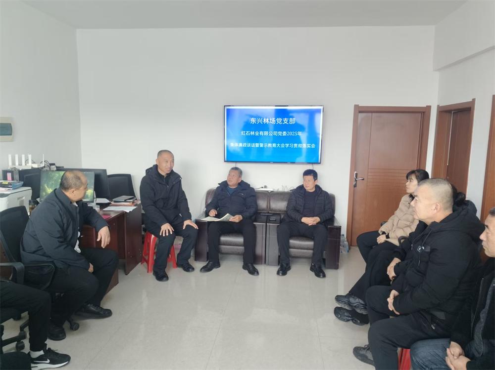 12月3日,东兴林场党支部召开专题会议传达学习公司党委集体廉洁谈话暨警示教育大会会议精神,会议由党支部书记张延国主持,股段级以上、党员、积极分子参加会议。
