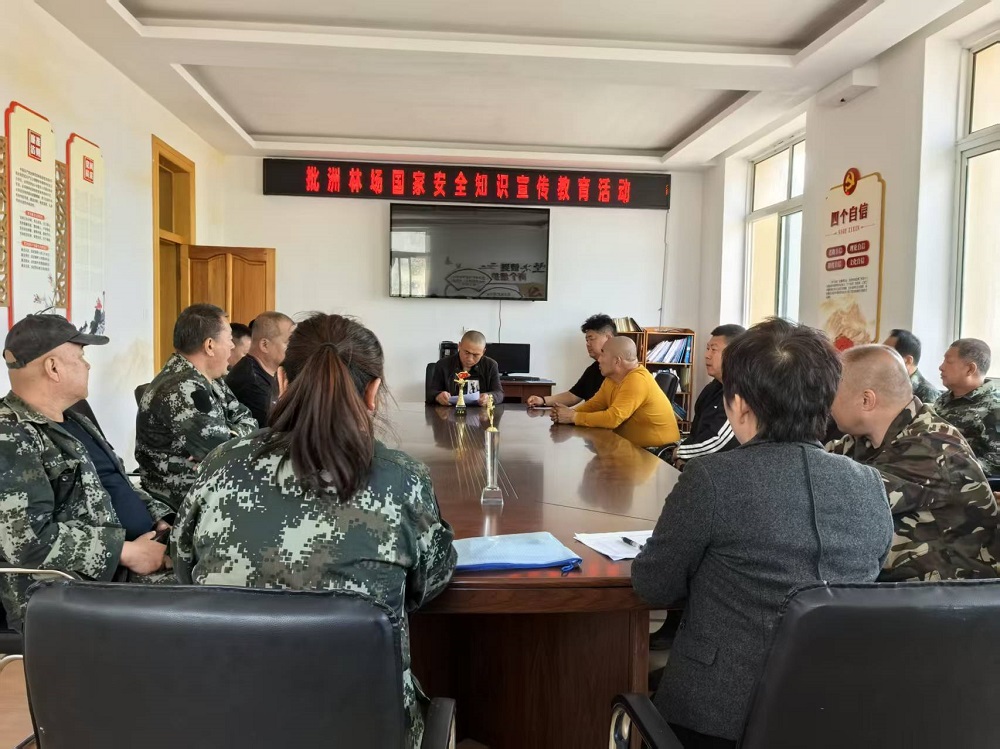 4月16日,批洲林场在会议室组织全体职工召开国家安全教育专题会议,会议由林场安全员主讲,并同步开展线上宣传,切实增强职工安全意识。