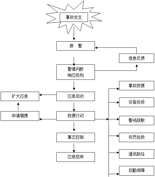 在事故应急指挥部的统一领导下,实行分级响应、快速启动、各部门协调配合联动的应急工作责任制。