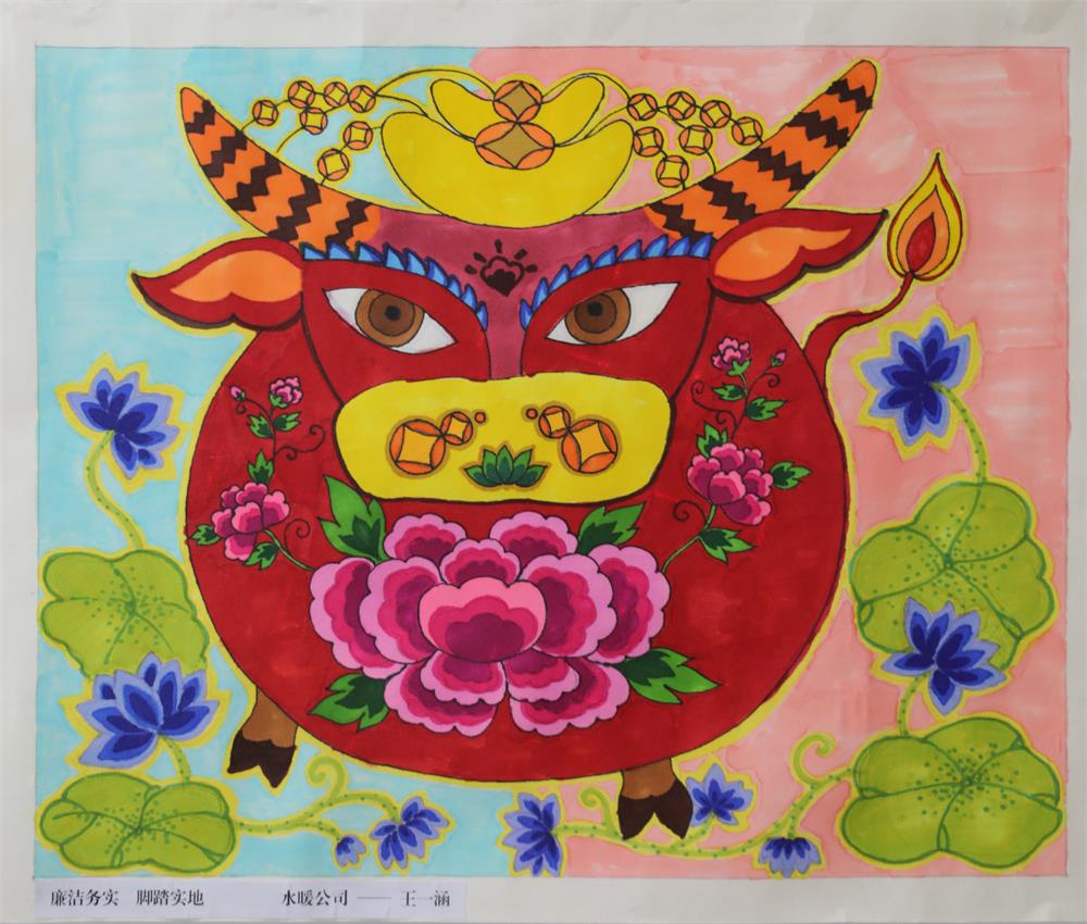 作品简介:丙烯颜料绘画,以一头辛劳耕田的牛为象征,展现了基层干部的勤劳和务实,默默奉献。暗示了应通过实际行动彰显廉洁和踏实的工作态度,为人民服务的工作作风。