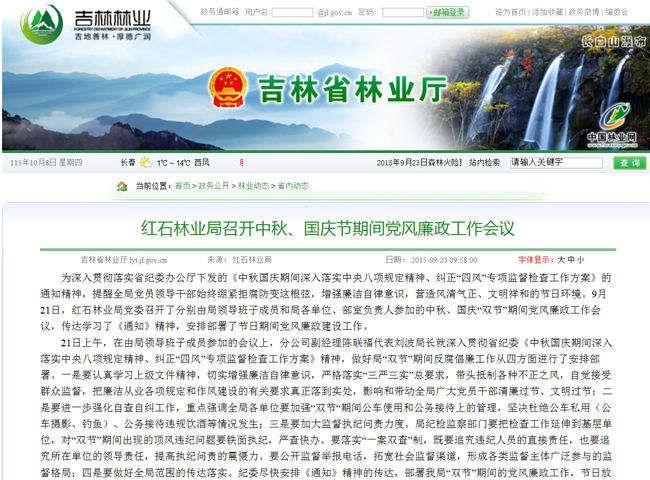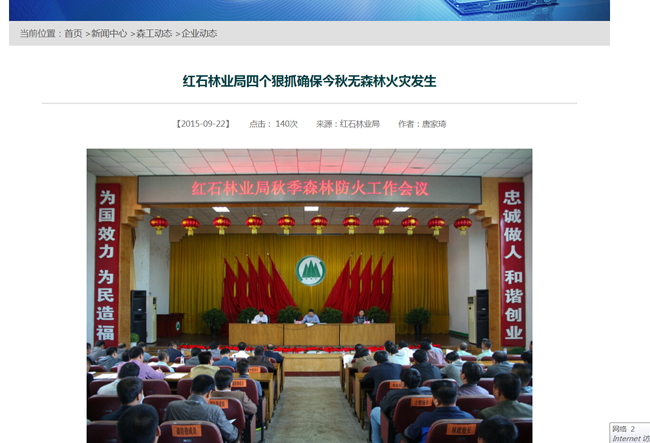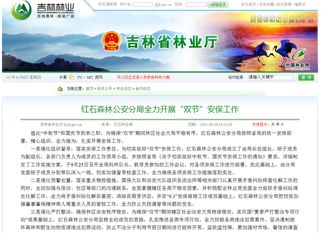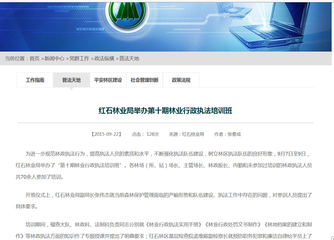 林业厅网站对红石森林公安局开展的工作进行了报道。