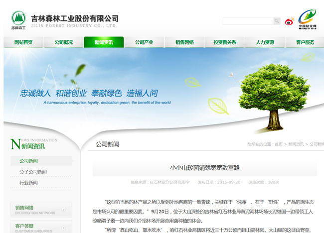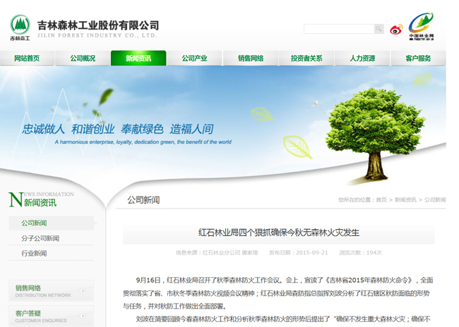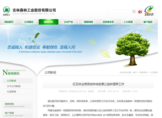中国绿色时报、吉林工人报、林业厅网站、吉林森工集团网站、E木网、中工网、股份公司网站对此事进行了报道。