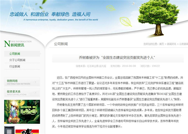 林业厅网站、股份公司网站对此事进行了报道。