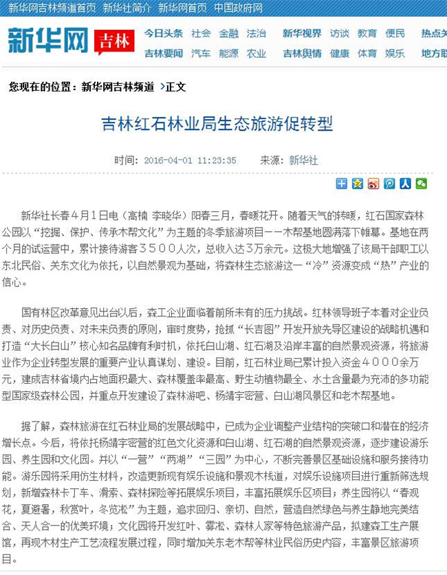 新华网、林业厅网站红石国家森林公园的各项举措进行了报道。