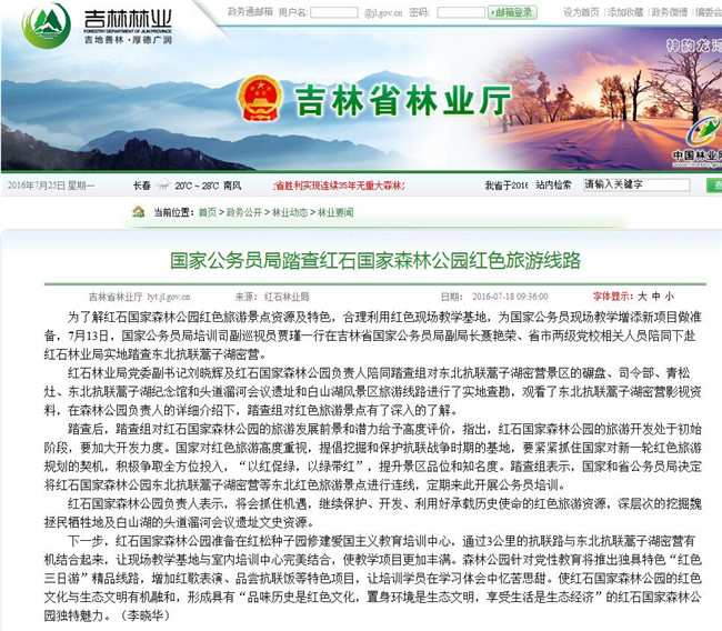 林业厅网站对此事进行了报道。